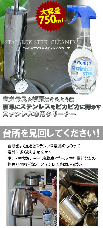 【容器ヘコミがあるワケアリ品】大処分!ステンレスの汚れを落としピカピカに輝かせるクリーナー!「アストニッシュ☆ステンレスクリーナー750ml Astonish」 【ステンレススティール ステンレス表面の汚れ落とし 保護】※クロネコ便(ポスト投函)不可 お歳暮